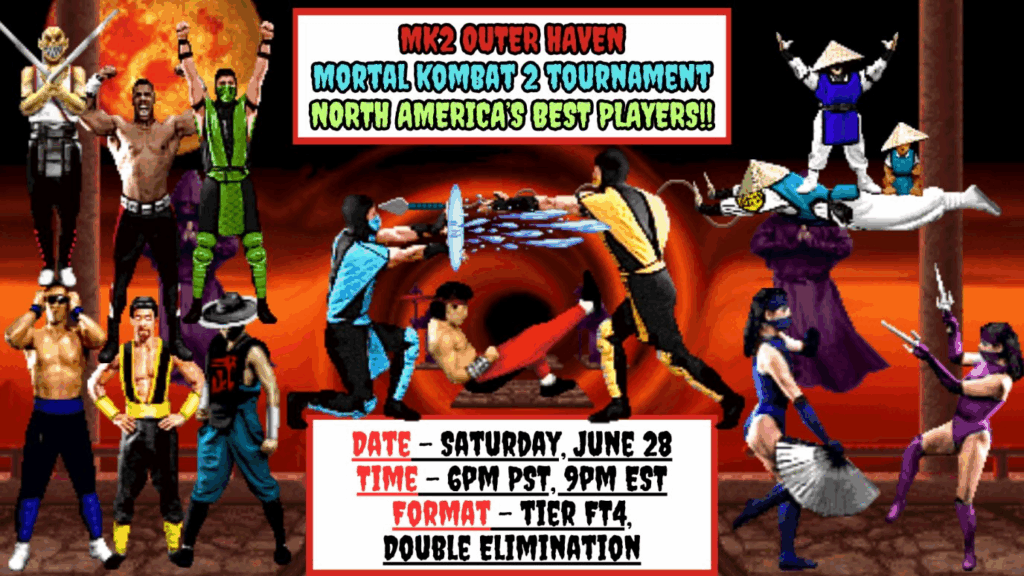 This Saturday, June 28th is the next Outer Haven circuit tournament stream for Mortal Kombat II hosted by MKB. The highest A-B ranking players on the server in Tiered Select Format! Check it out at 9PM Eastern on twitch.tv/KombatNetwork!